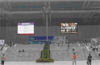 ■现场广告: | 名称 | 位置 | 大小 | 示意图 | | * 可移动广告板(推荐)-H1 | 北广场水池及东西入口幕墙边 | 5×3m(w×h) |  | | * 落地气球(推荐)-H2 | 北广场水池及展馆四周 | 球直径2.5m |  | | * 拱形门(推荐)-H3 | 北广场旗杆区、东门入口、展馆南面主通道 | 跨度18m、跨度25m |  | | 凯旋门-H4 | 北广场 | 跨度25m、高度10m |  | | 灯杆旗-H5 | 展馆南面、东西面绿篱 | 0.6m×1.5m |  | | * 充气气柱(推荐)-H6 | 北门广场限8个、展馆南面通道东西门出入口4个 | 高9m,直径1.2m |  | | * 充气模型-H7 | 北门广场、北门广场地铁出入口旁,限2座 | 最高5m |  | | * 广告太阳伞-H8 | 广场旗杆区100把、东西入口处各50把 | 直径2.5m |  | | 展厅外喷绘系列-H9 | 展馆北面户外幕墙喷绘等(请查看详细信息) | 24×2.5 |  | | 展厅内喷绘系列-H10 | 展厅内观光电梯表面等(请查看详细信息) | 3m×12.6m(高) |  | | * 大型全彩LED高亮度显示屏(推荐)-H11 | 北门广场入口两侧大屏幕 | 11.3m×8.5m(高) |  |
